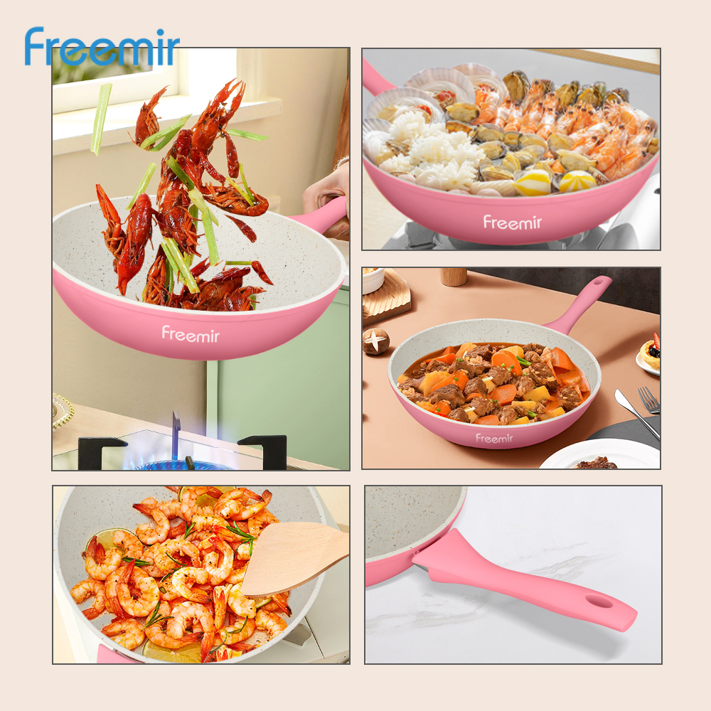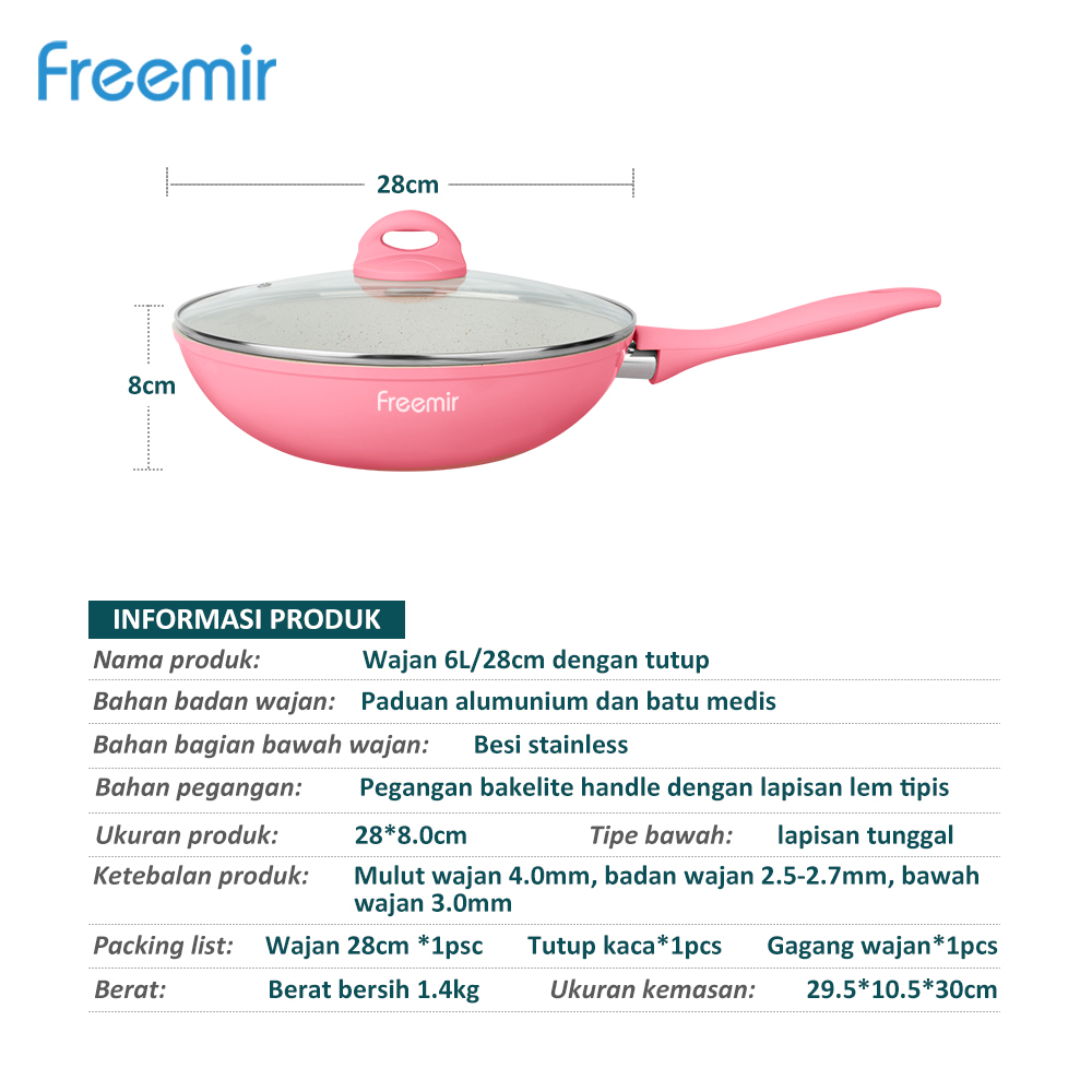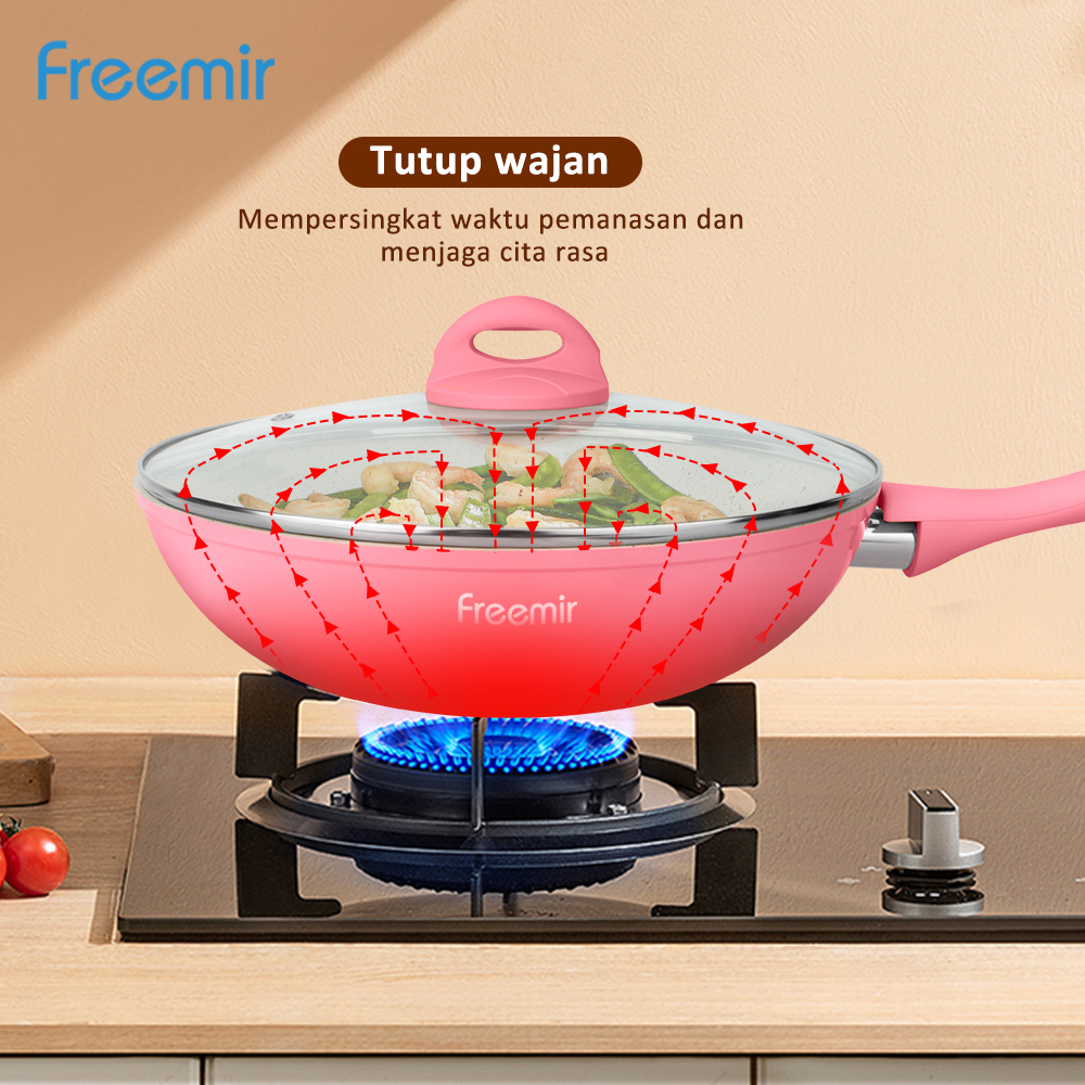 Detail [LIVE] freemir Sakura Series Wajan Pink 28 Cm Wajan Serbaguna Anti Lengket Menggoreng Menumis Merebus