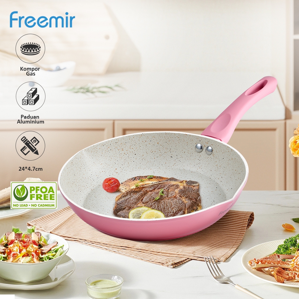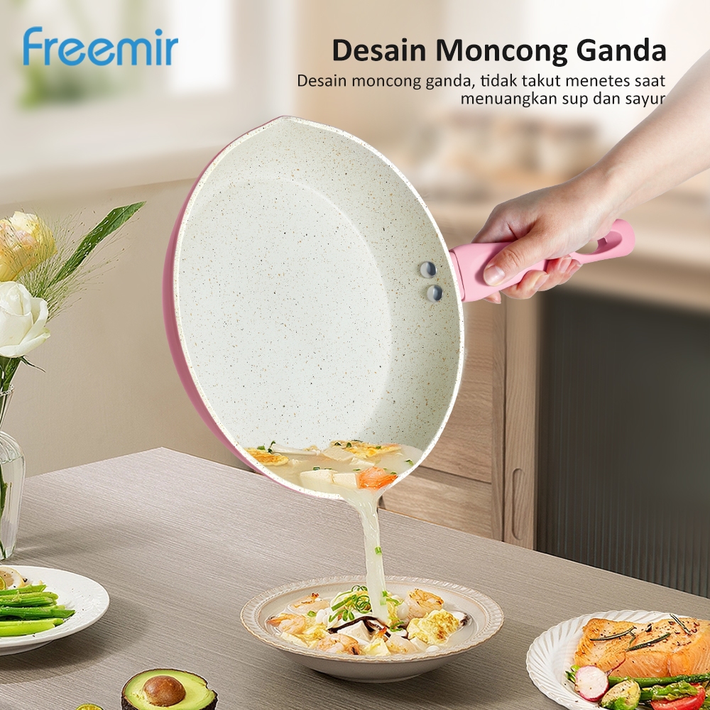 freemir Wajan 24 Cm Penggorengan Anti Lengket Pink Corong Ganda Gagang Tahan Panas