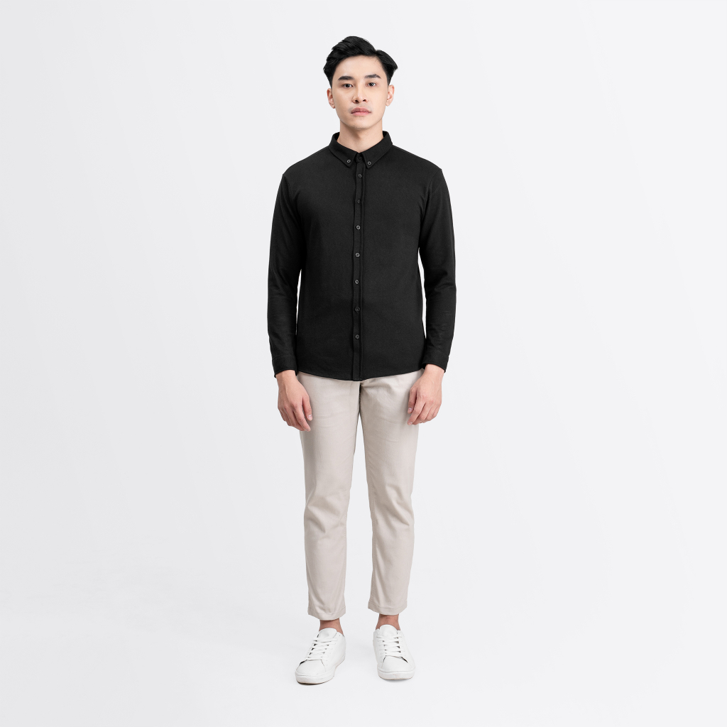 Didesain dengan siluet slim fit serta tambahan kancing pada bagian kerah yang membuat kemeja ini bisa digunakan ke acara formal, semi formal, bahkan acara casual sekalipun.