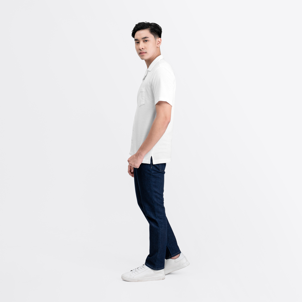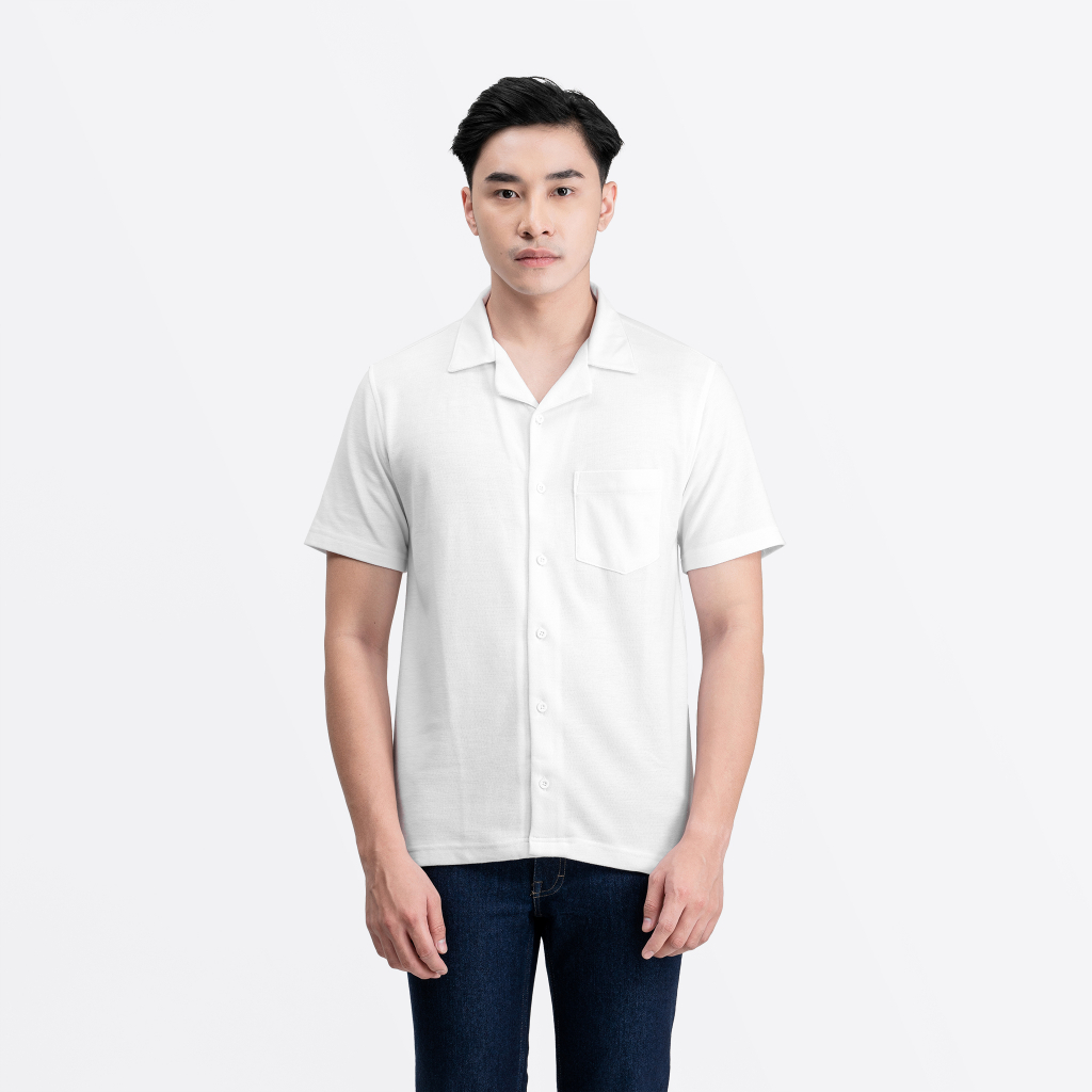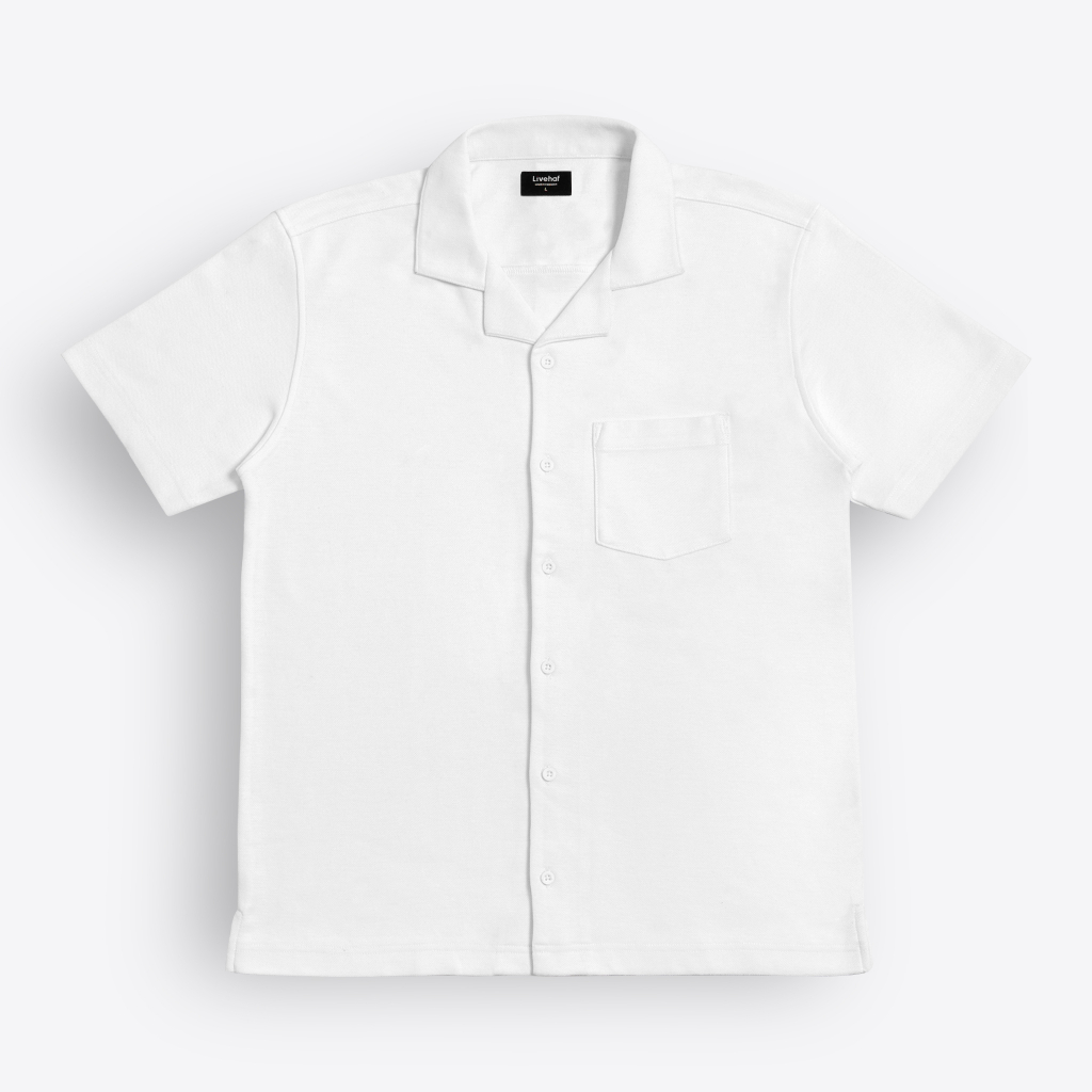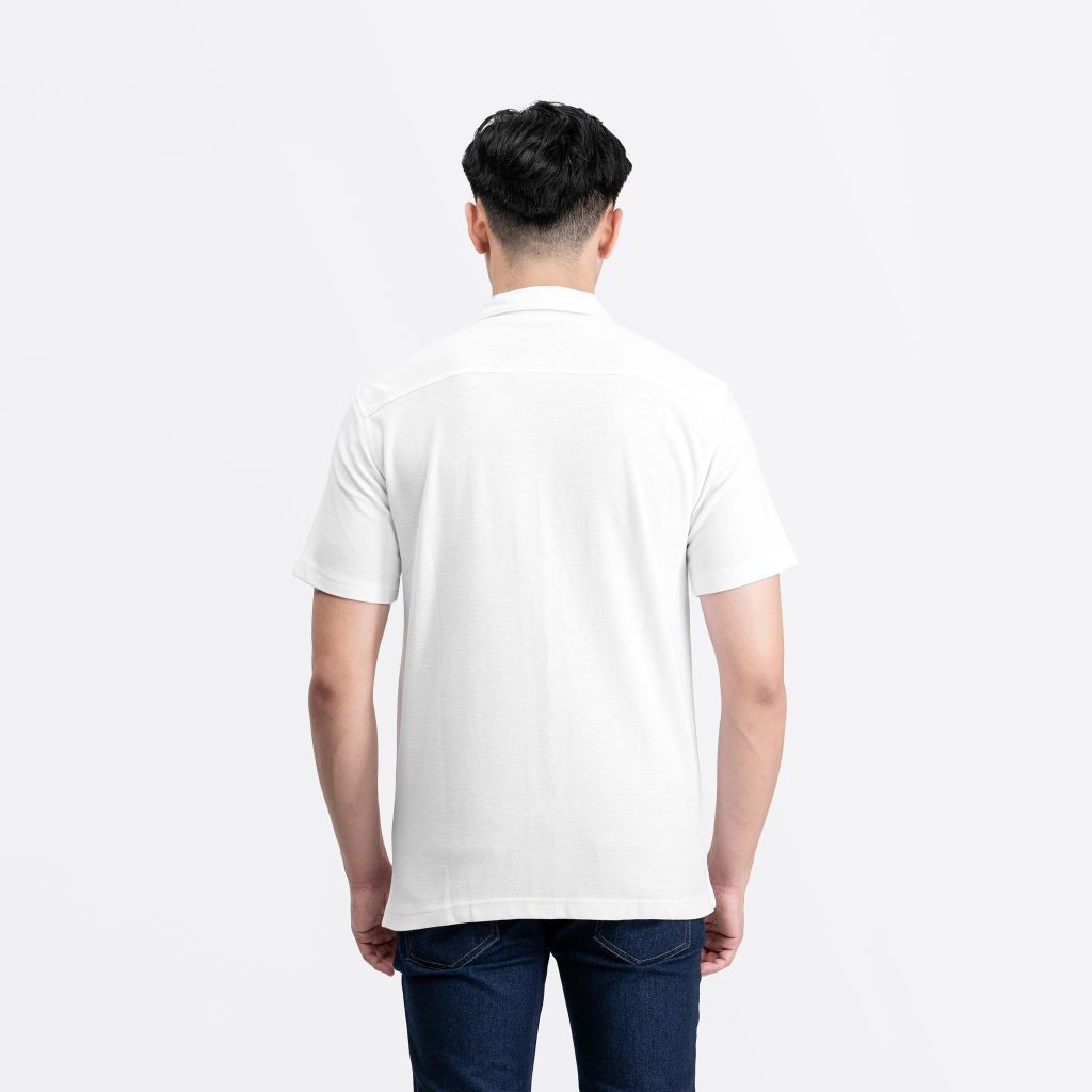 Bahan : 100% Cotton Pique Premium Kerah Cuban Slim Fit Tidak Gombrong Kantong sebelah kiri Model Pakai Size L Tinggi & Berat Model : 185cm & 79kg