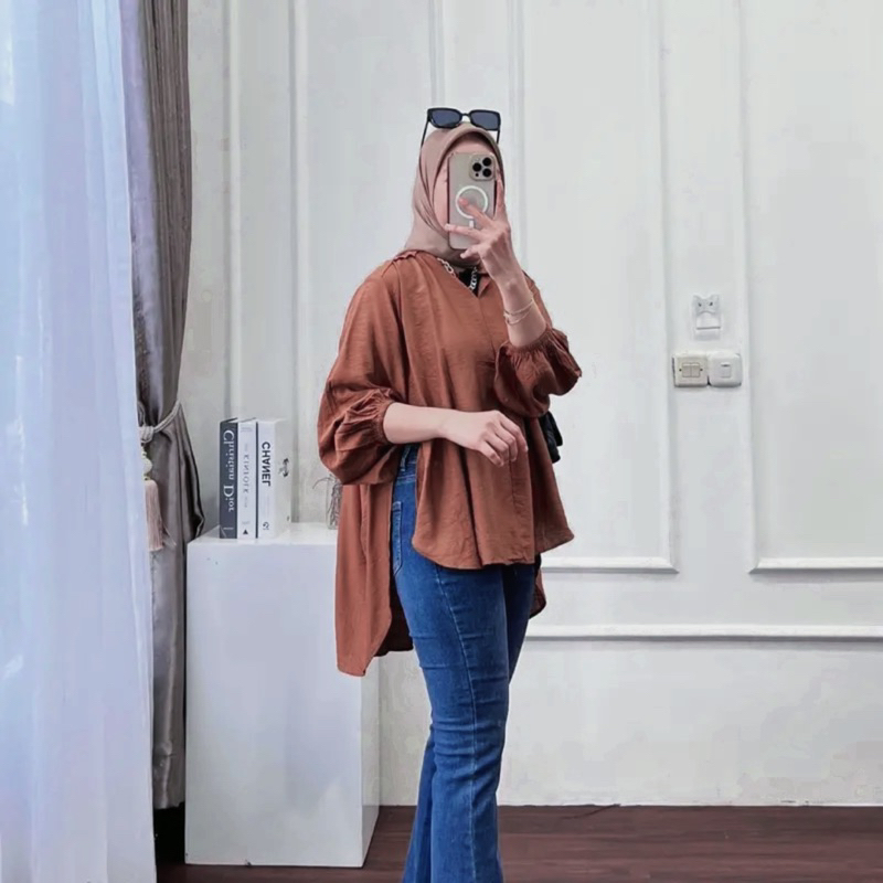 LIVIA BLOUSE KEMEJA OUTER CRINKLE AIRFLOW - Cirebon Cloth | Blouse wanita muat BB 40-90 kg