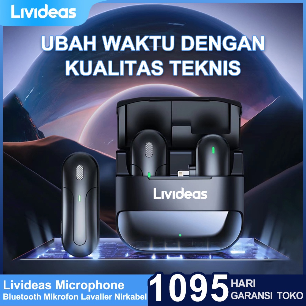 Elektronik > Perangkat Audio & Speaker > Mikrofon & Aksesoris > Livideas Wireless Microphone Dual Lavalier Microphone Bluetooth Plug & Play Lapel Mic with Charging Case Mikrofon for TikTok Microphone Live Stream mic Vlog Video mic Recording Noise Reduction Auto Sync