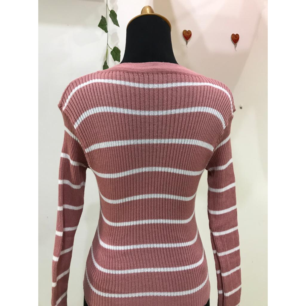 Bahan Melar PresBody Atasan Wanita Dengan Tangan Panjang Model Salur Memajang Ke Samping