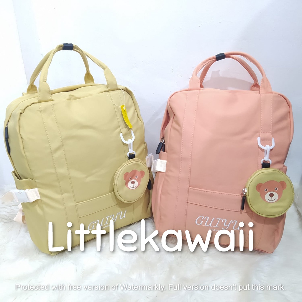 LK/Tas Ransel Laptop Backpack Tenteng Sekolah Fashion Korean Style Anak Remaja Dewasa Gesper Gantungan Dompet Bear Import