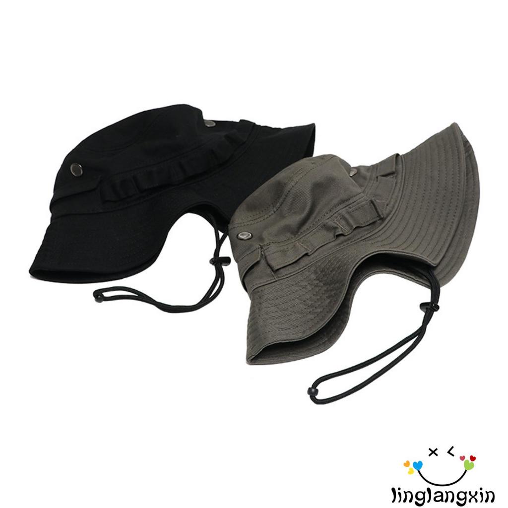 Detail Llx-topi Nelayan Wanita Pria Warna Solid/Kamuflase Pinggiran Lebar Perlindungan Matahari Tali Yang Dapat Disesuaikan