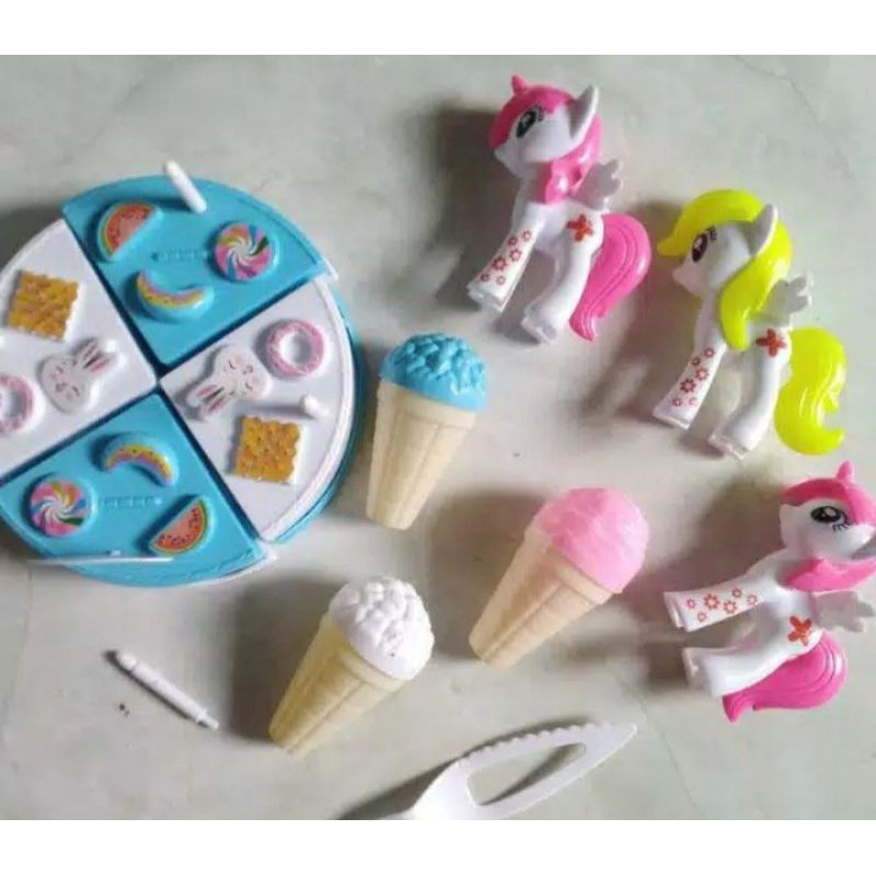 Ibu & Bayi > Mainan > Mainan Peran > [LM3] Mainan Anak Kue Tart Potong Ulang Tahun Bonus 3 Kuda Pony Kuda Poni Dan Es Krim Ice Cream - Mainan Cake Tart Pony Es Krim LM 3