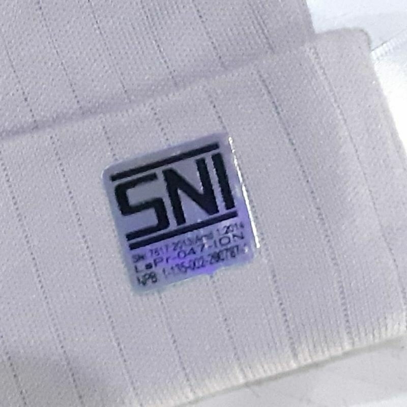 Bahan lembut , halus dan adem. Set terdiri : 1 pc topi 1 psg sarung tangan 1 psg sarung kaki SNI.