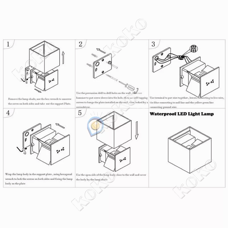 Kiat hangat: 1. Selalu matikan daya sebelum memasang, melayani, memperbaiki, membersihkan. 2. Pastikan untuk mengencangkan kancing kabel dengan aman untuk mencegah kelonggaran atau kebocoran. 3.Untuk memastikan keamanan, silakan sewa ahli listrik profesional untuk memandu pemasangan lampu dinding LED ini.