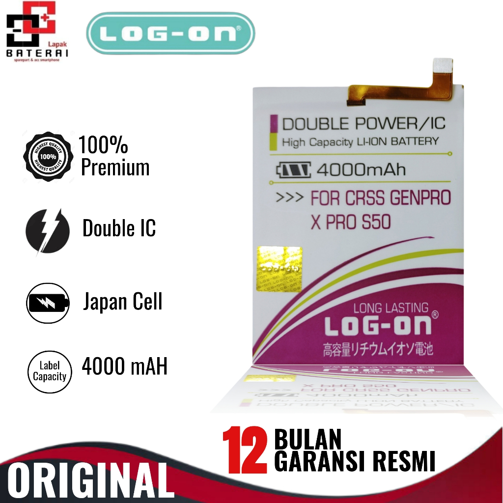 Detail LOG - ON Baterai Evercoss S50 Genpro X Pro Double IC Protection Battery Batre