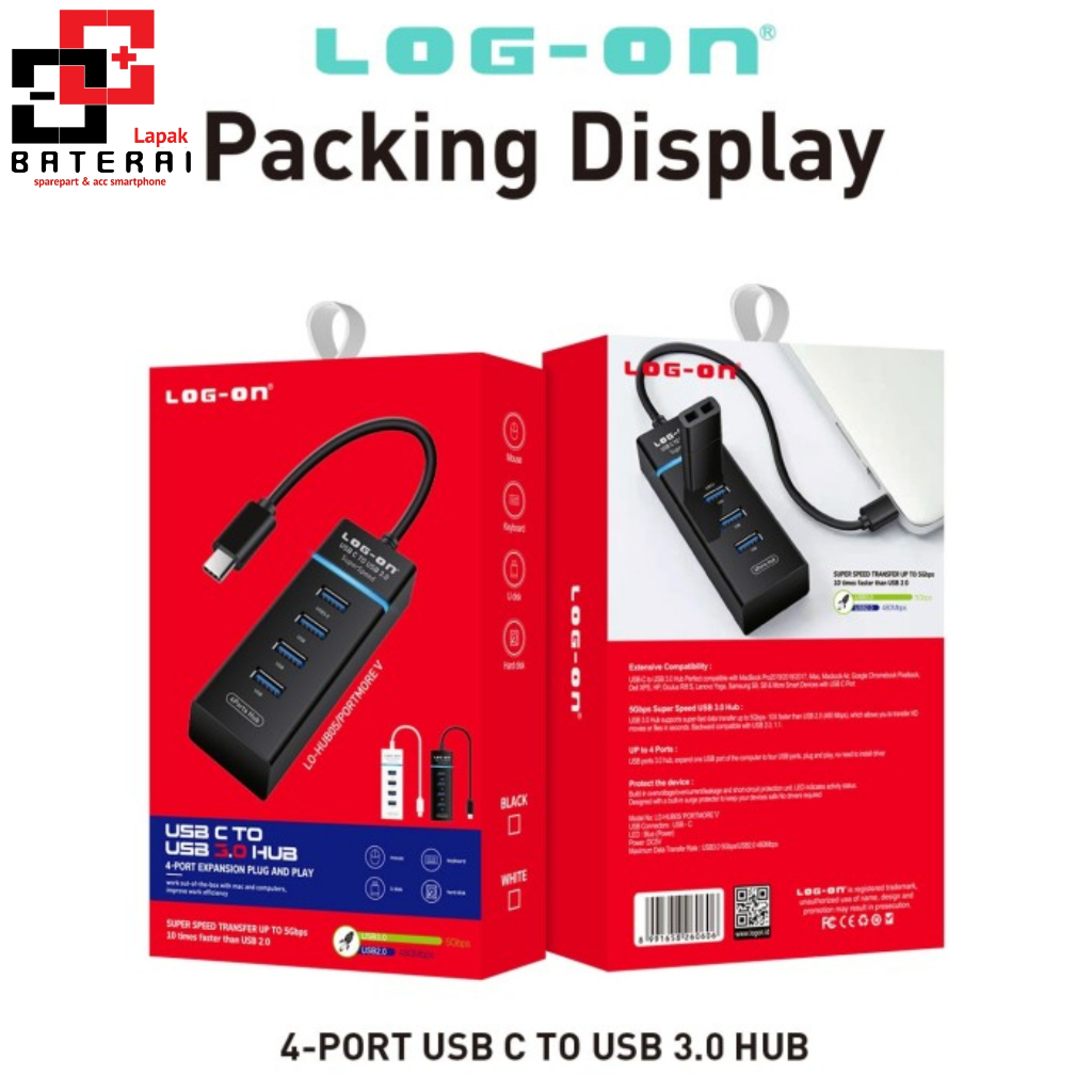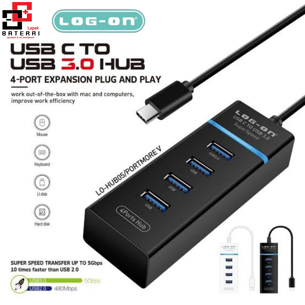 Komputer & Aksesoris > Aksesoris Desktop & Laptop > USB HUB & Card Reader > LOG - ON Hub05 Usb Hub Kabel Type C To Usb 3.0 4 Port High Speed Transfer Up to 5Gbps