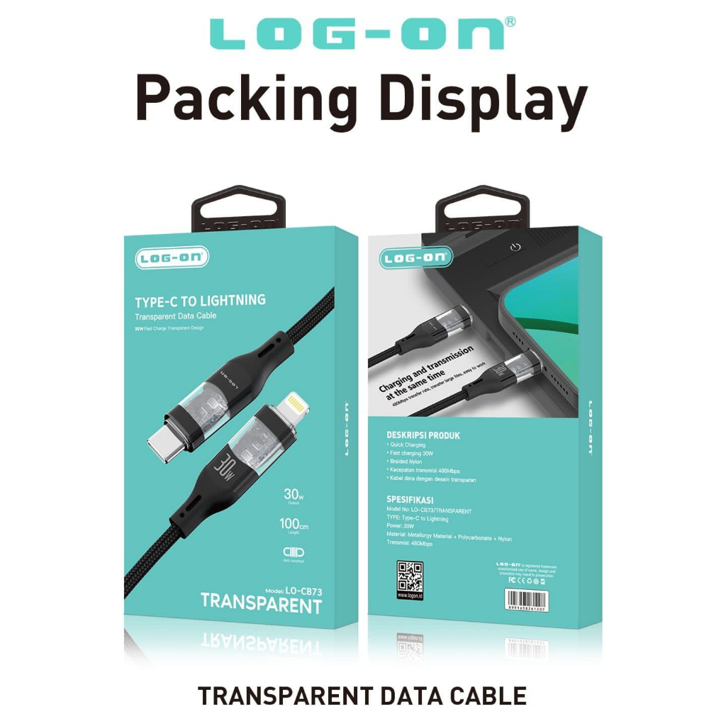 Handphone & Aksesoris > Kabel, Charger, & Konverter > Kabel & Adaptor Handphone > LOG-ON KABEL DATA FULL IC TRANSPARENT LO-CB73 65W 30W MAX 1METER ORIGINAL SUPPORT SEMUA HP PROMO SEN