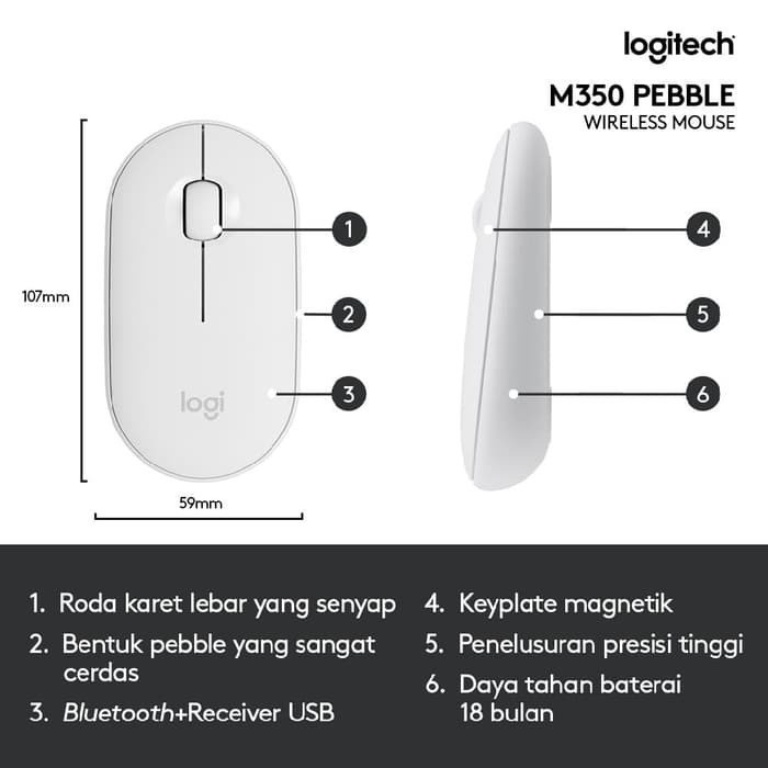 Detail Logitech Pebble M350 Mouse Wireless Bluetooth Slim Silent