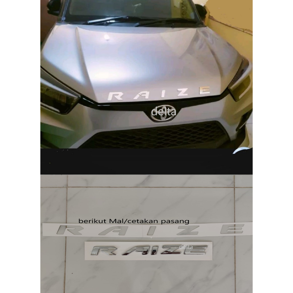 Emblim/Logo Kap mesin RAIZE Warna Chrome Ukuran Besar Harga 1set (tulisan Raize) *berikut lem *berikut MAL (cetakan utk pasang di mobil) Hight Quality produk seperti di foto' membuat mobil terlihat Elegant
