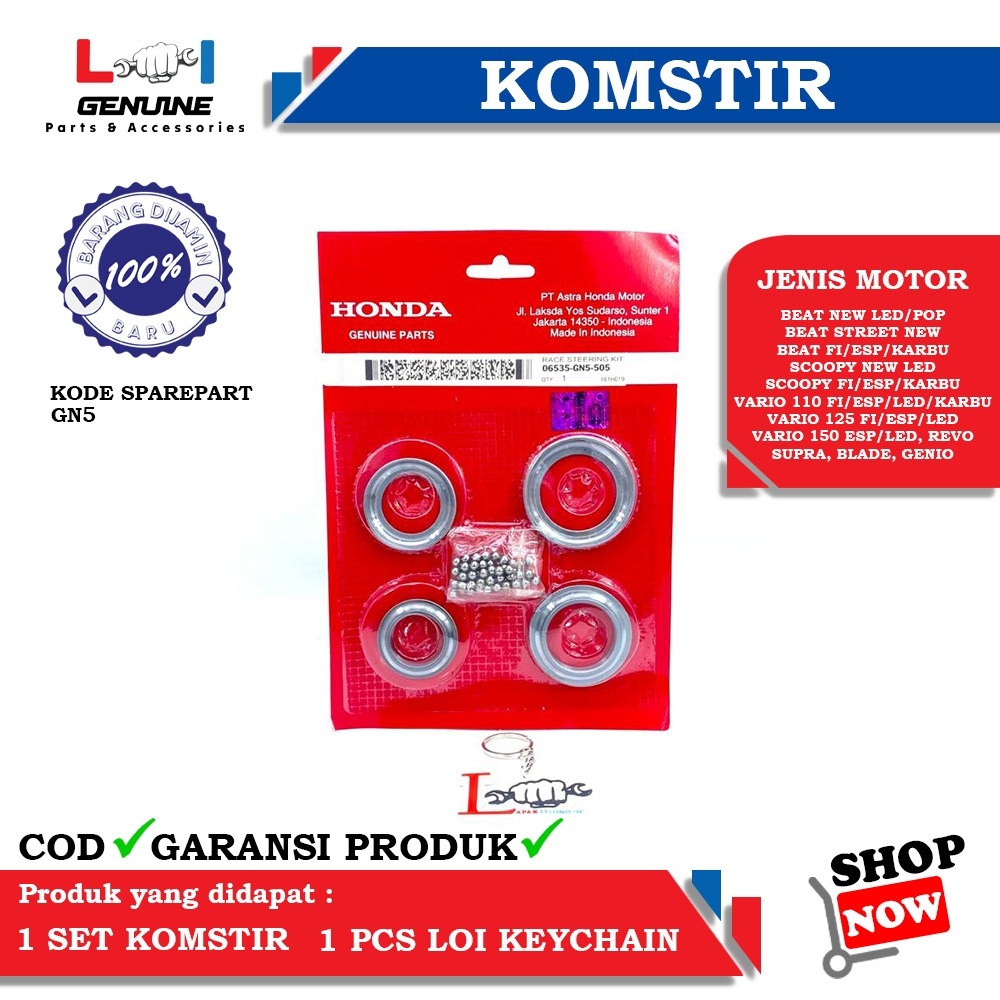-LOI- COMSTIR KOMSTIR HONDA ORIGINAL BEAT KARBU/FI/ESP, VARIO 110 KARBU/FI/ESP, SCOOPY KARBU/FI/ESP, SPACY KARBU/FI, VARIO 125 FI/ESP, VARIO 150 ESP, REVO,BLADE ,KHARISMA ,SUPRA GN5 Isi Produk : KOMSTIR Kode Sparepart : GN5