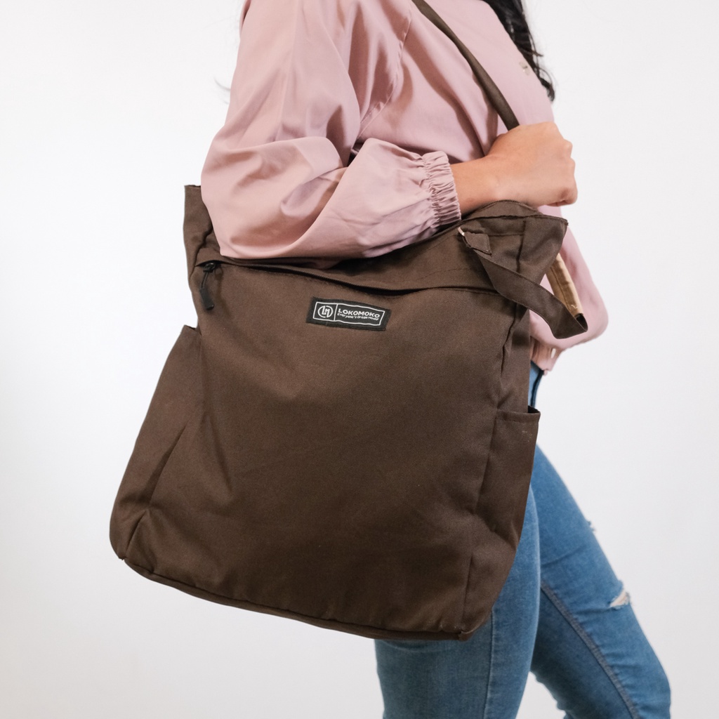Detail Lokomoko -ToteBag Resleting Kanvas Marva Coklat Pria Wanita