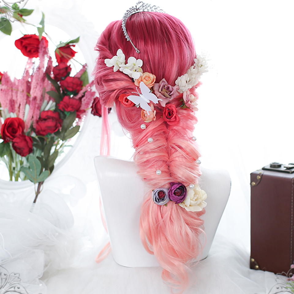 Detail LOL-17 wig rambut palsu lolita cosplay harajuku daily kpop idol merah gradasi pink rose