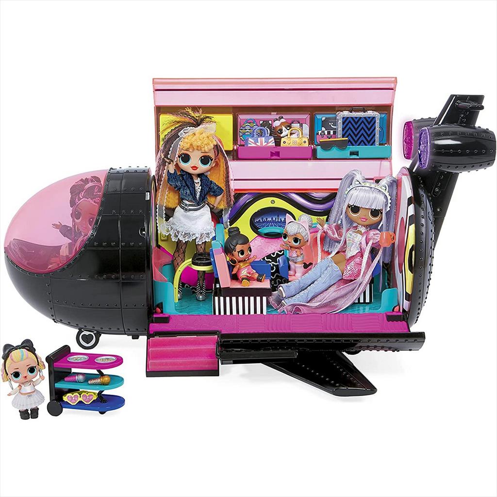 - 4-in-1 : Plane, Car, Recording Studio and Mixing Booth and have your ultimate remix experience. Also includes working lights and sounds, drink cart with plates and cups, rolling suitcases, overhead compartments that open and close, seatbelts and more - Have your LOL Surprise dolls and fashion dolls a memorable experience as they tour to attend the loudest parties and concerts across the globe. So what are you waiting for, fasten that seatbelt and celebrate the surprises - Pull out the seat section and it becomes a surprise car to drive to the concert. Detach and turn plane on its side to create a recording studio and mixing booth, where B.B.s can work on their latest remix. Party time - Plane includes seats for 4 dolls plus a pilot's seat. Front seats swivel around, so BFFs can chat and enjoy the spare moments on the flight. When it's time to sleep, seats recline for B.B.s to get their beauty rest. Sleep tight - Accessories includes : 2 neck pillows, 2 sleep masks, 2 microphones, 2 headsets, 2 blankets, tablet accessory, ticket, passport and more FITS DOLLS OF ALL SIZES: Fits L.O.L. Surprise O.M.G. fashion dolls and all other L.O.L. Surprise dolls.