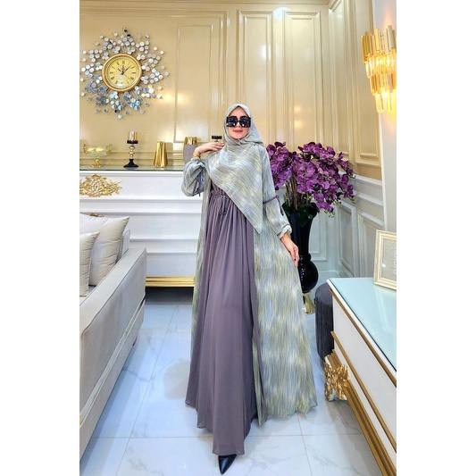Keterangan : 🦋 Full CERUTY PREMIUM QUALITY😍 🦋ALL Size Fit To XL-- 🦋 Ld 110 PJ 140 cm 🦋Sleting Depan Busui 🦋Model Lengan Semi balon dan di percantik aksen list vita di lengan🤩