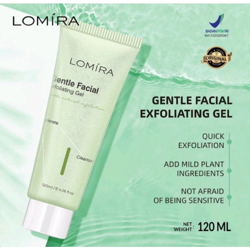 Lomira Gentle Facial Exfoliating Gel manfaat mengangkat sel-sel kulit mati dan sisa kotoran di wajah secara menyeluruh, membantu mengurangi tanda-tanda penuaan dini, membantu mengecilkan pori-pori wajah, serta meratakan warna dan bercak kulit yang kasar, sehingga menjadikan kulit lebih halus dan tidak kusam.