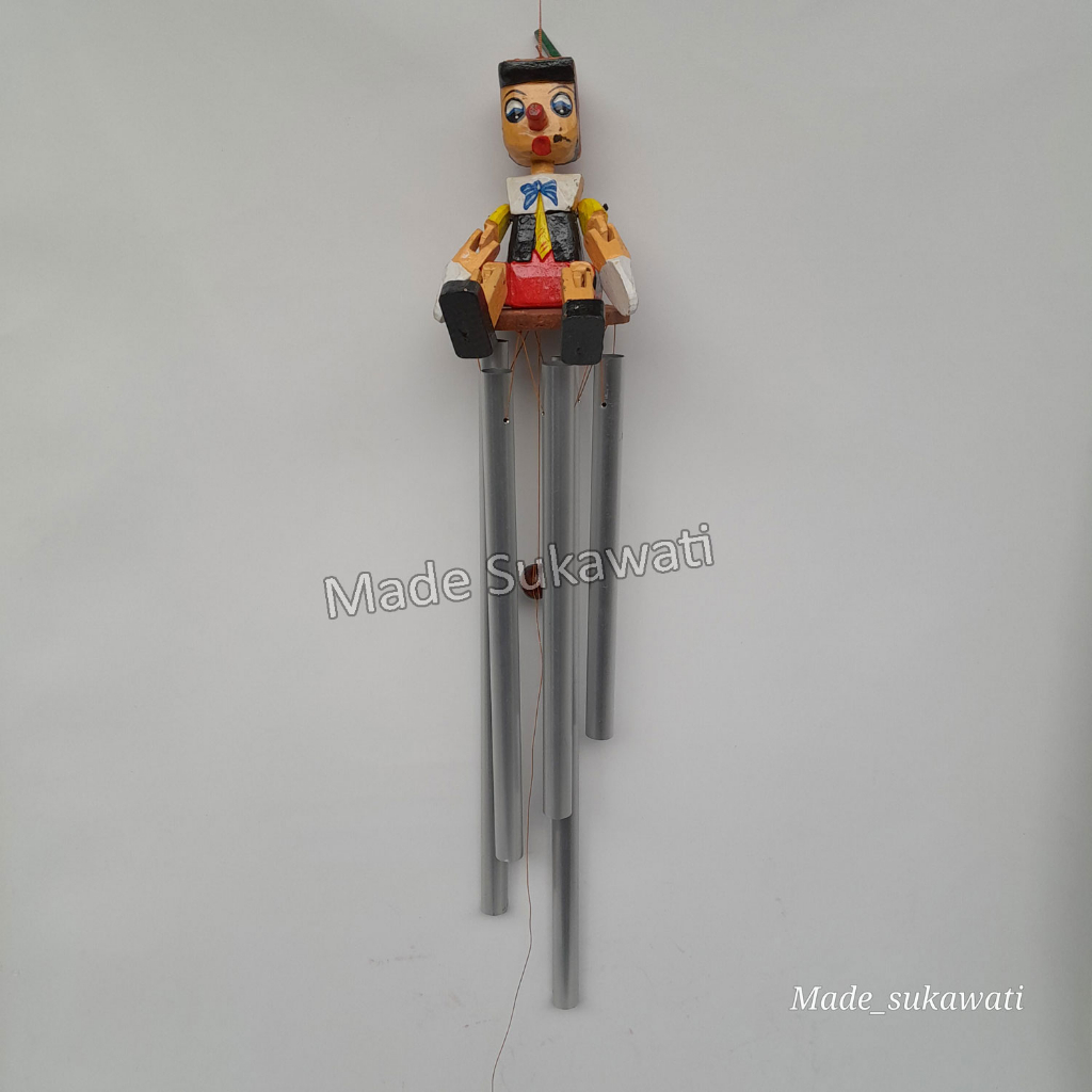Produk kerajinan tangan lonceng bel wind chime krincingan aluminium , lonceng krincingan klasik tradisional bahan boneka pinokio kayu , , krincingan pipa aluminium nyaring variasi, Ukuran diameter kayu -+9cm, panjang pipa 22-39cm, diameter pipa 2cm, Panjang sampai ujung gantungan -+100cm,