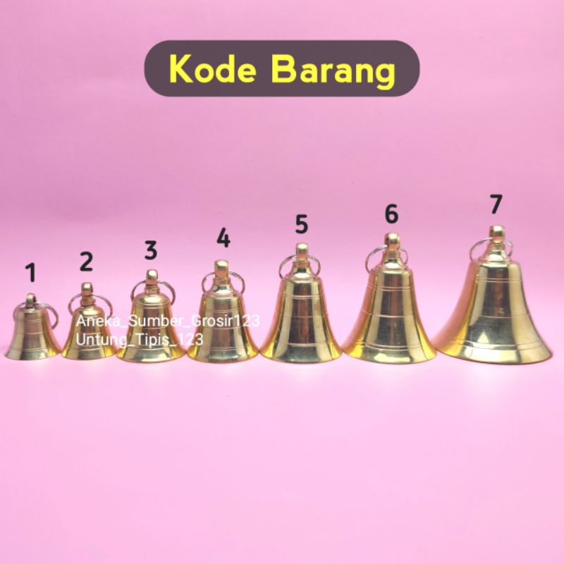 KETERANGAN PRODUK : - Barang Sesuai Gambar - Harga Satuan - Lonceng nya Udah pakai Ring gantungan - Ada 7 ukuran silahkan pilih - Bahan Aseeliiii Kuningan bukan kaleng - Suara di Jamin nyaring - Ukuran Makin Besar Suara Makin Kencang - Mengenai ukuran Silahkan perhatikan lagi gambar nya yaa