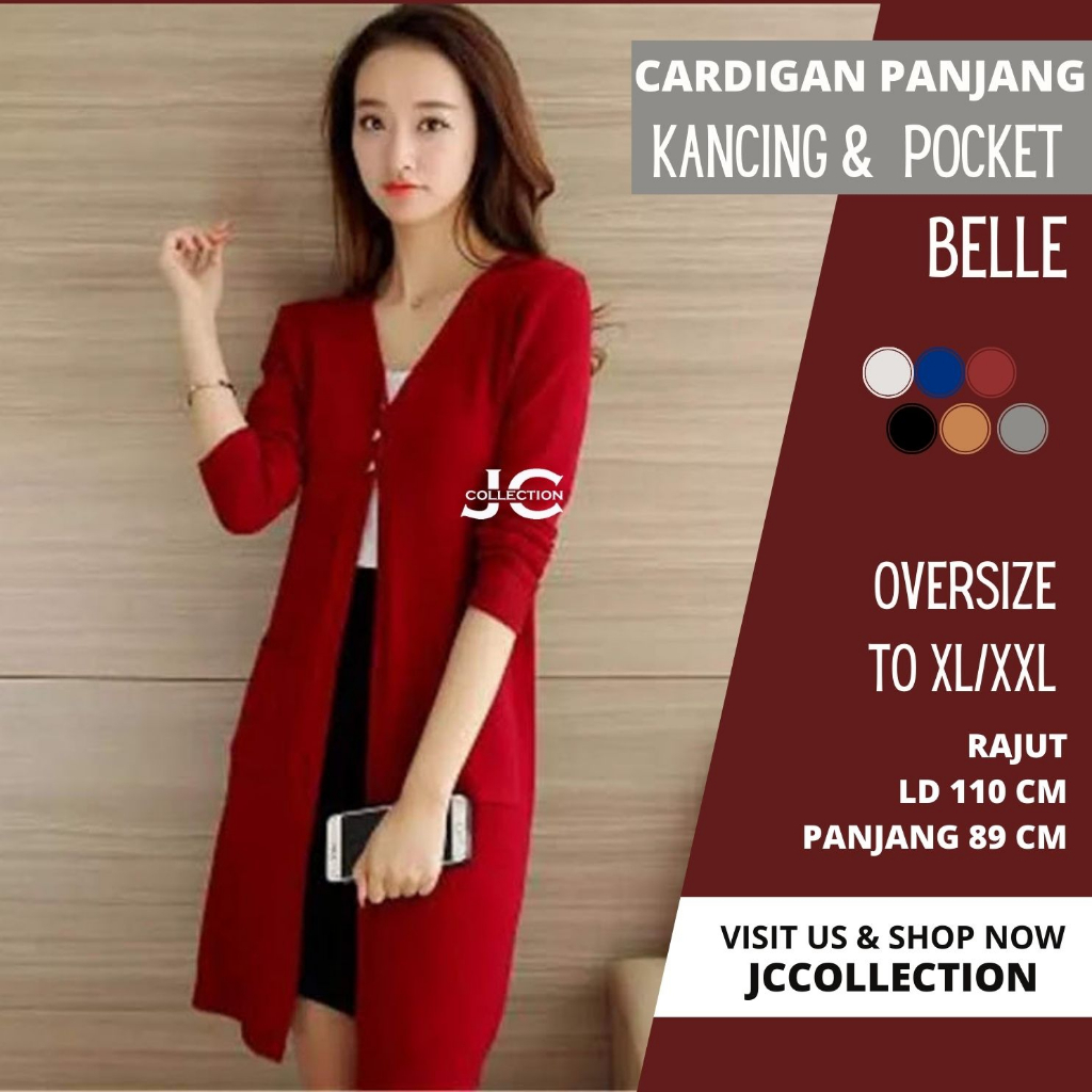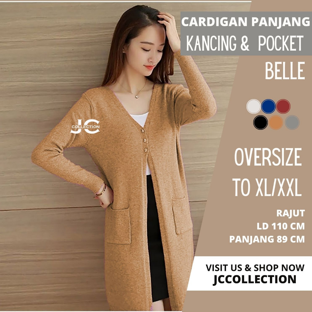 Long Cardigan Oversize Kancing 3 Belle Kardigan Tunik Rajut