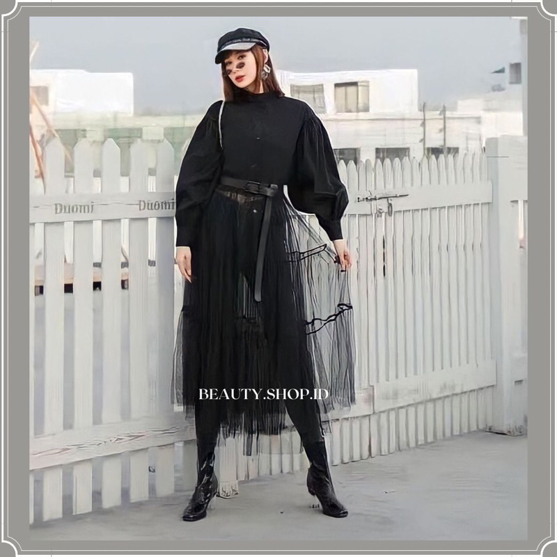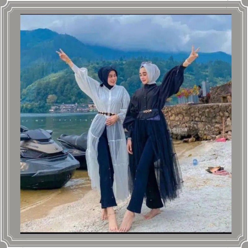 Long outer mix tille *kain tiile premium *mix kain crepe premium *dua lapis kain tille *lengan balon *pergelangan couple panjang