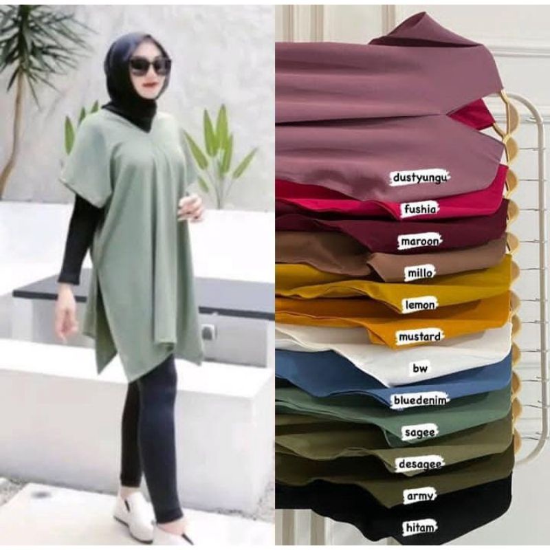 long oversize Bahan crinkle airflow Ukuran Allsize LD = -/+ 110 cm PJ = -/+ 70 cm berat produk 200 g