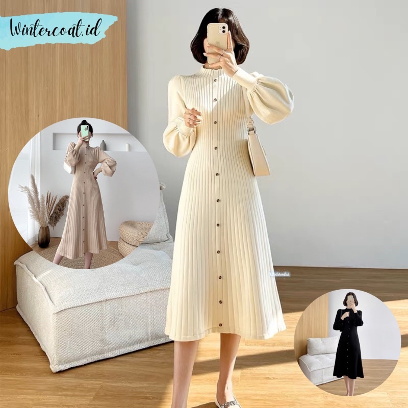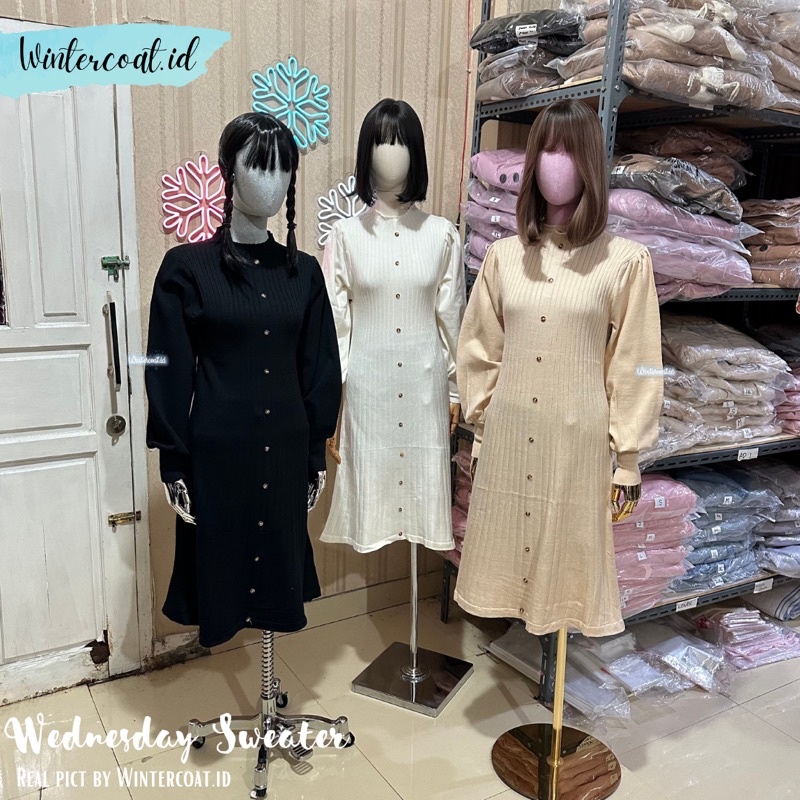 Ready Stock Siap Kirim✨ Long sweater dress “Wednesday” import Rp.325.000 Warna : White, Light Brown, Black