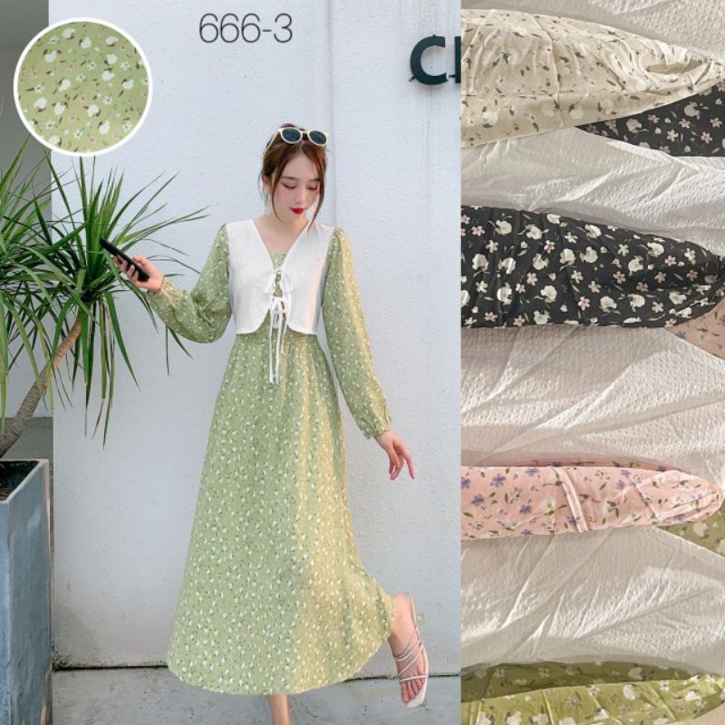 Detail Long Tunic Vintage Korean Dress + Vest 666-3