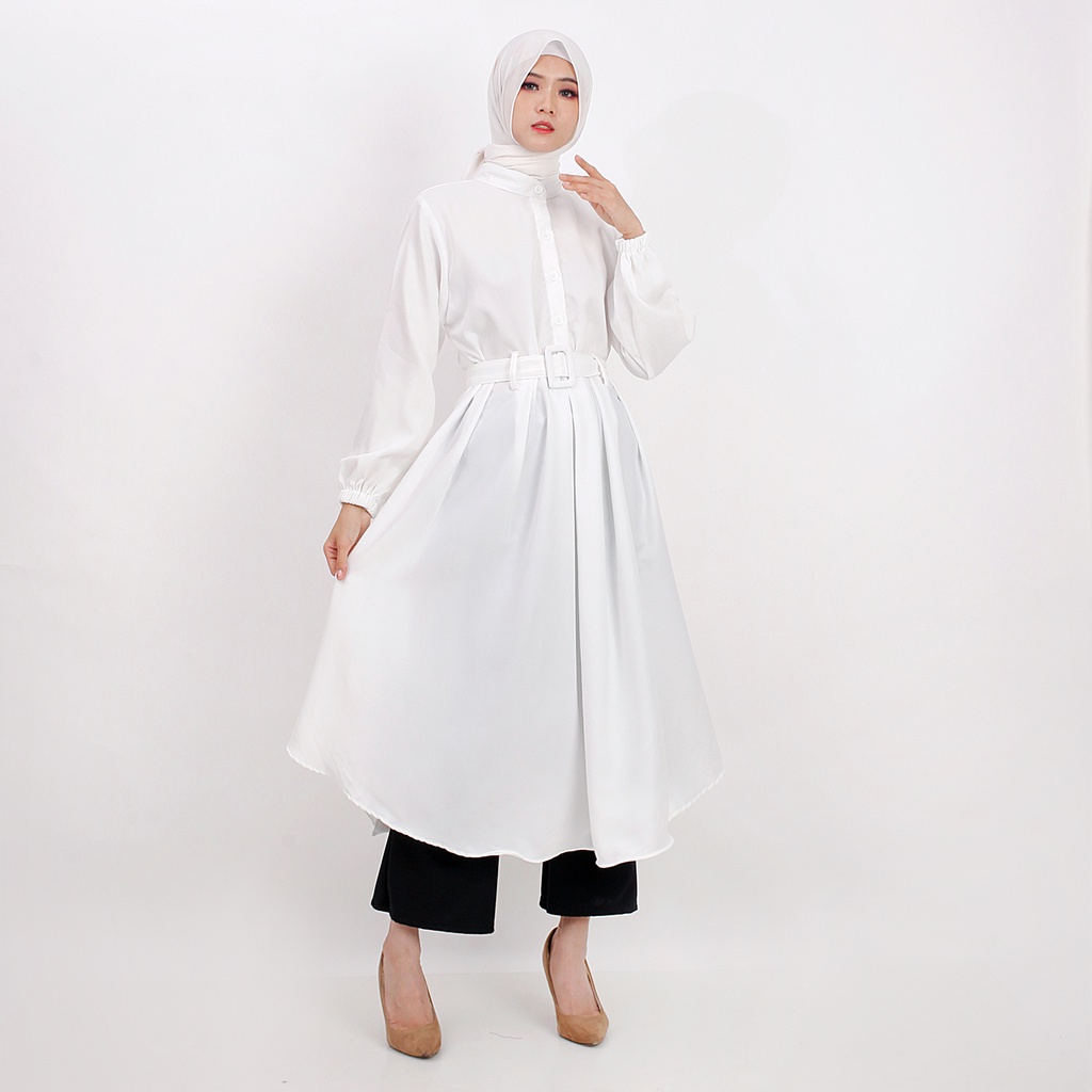 Kemeja Tunik Tangan Panjang Material : mosecrape Bahan tebal TIDAK GAMPANG KUSUT Struktur Elegant Kancing depan (aktif) Bisa buat busui tali ban gesper bisa di lepas Tangan ujung karet rempel pinggang