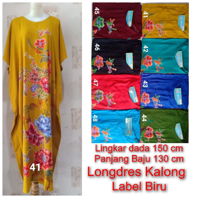 Longdres Kalong Kencana Ungu label Biru KUB Bahan rayon shantung, sejuk tebal Lingkar dada 150 cm Panjang baju 130 cm Stok ready sesuai varian yang bisa di klik