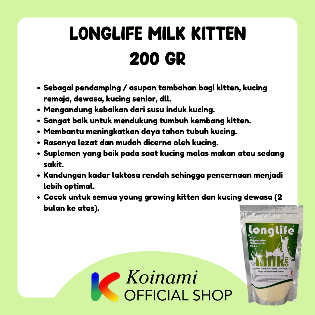 Detail LONGLIFE MILK KITTEN 200gr hijau / raid all / milk for cat / susu kucing