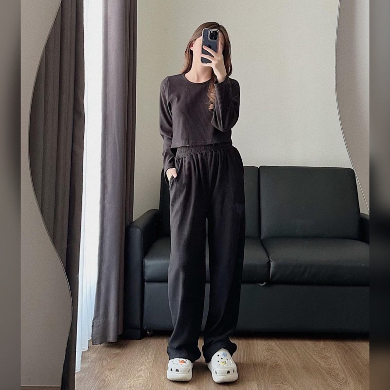 Detail lookatmeofficial - Winny One Set - Setelan Wanita Bahan Knit Lengan Panjang
