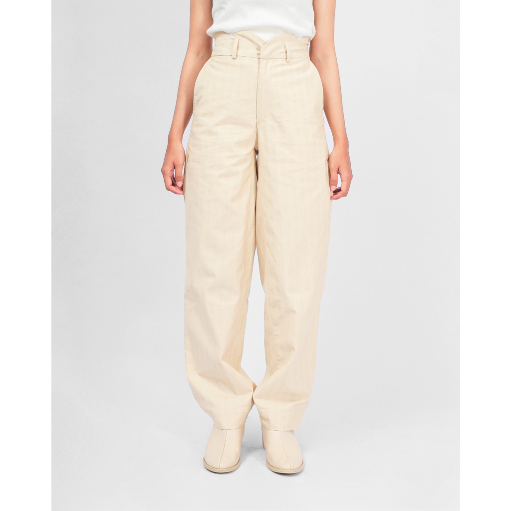 Celana panjang yang dirancang dengan material bercorak salur dan memiliki aksen bentuk yang unik pada bagian ban pinggang. Loona pants tampil untuk membuat penampilan lebih stylish dan percaya diri!