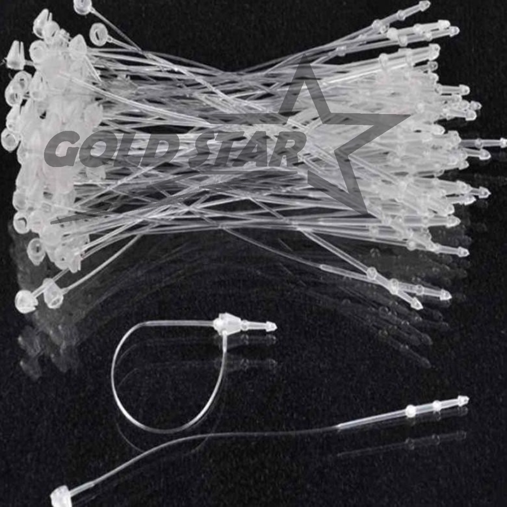Digunakan untuk memasang label/merek/harga pada pakaian, baju, celana, jaket, sepatu, tas, dkk Pemasangan secara manual sederhana tinggal di "cetik" kan dengan tangan (tanpa bantuan alat).