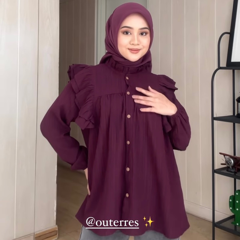 Outerres - LORA BLOUSE | Atasan Blouse Ruffle Polos Wanita