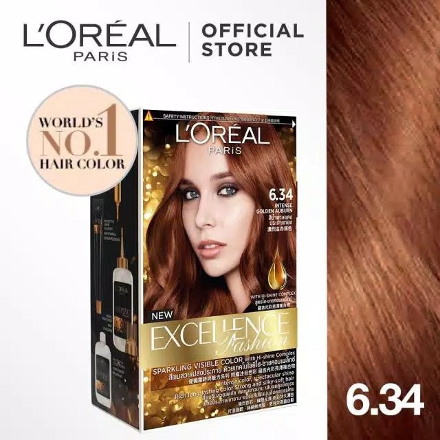LOREAL PARIS EXCELLENT HAIR COLOUR ULTRA FASHION CREME CAT PEWARNA RAMBUT - 6.34 INTENSE GOLDEN AUBURNLOREAL PARIS EXCELLENT HAIR COLOUR ULTRA FASHION CREME CAT PEWARNA RAMBUT - 6.34 INTENSE GOLDEN AUBURN