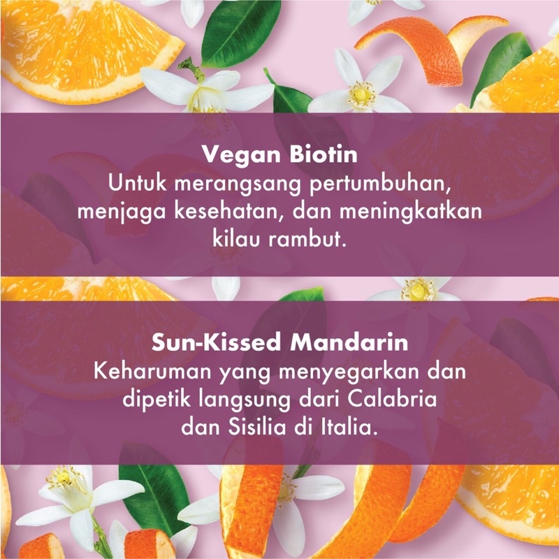 4. Ungu- Mandarin Vit C Kembalikan kekuatan rambut dengan Strong & Radiant Shampoo dengan kandungan Vegan Biotin dan Sun-Kissed Mandarin yang menyegarkan, serta berperan penting dalam merangsang pertumbuhan, mencegah rambut rontok, menjaga kesehatan, dan meningkatkan kilau rambut.