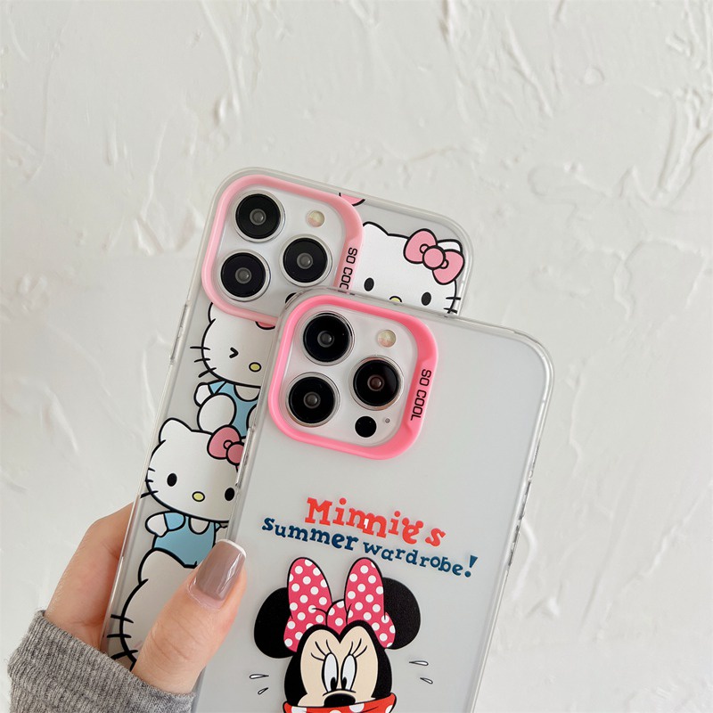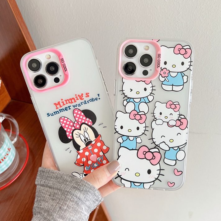 🔔【Ready Stock】 Lovely Hello Kitty & Minnie Skin Feel Soft Case HP iP iPhone 12 13 14 Pro Max 11 Woman Girl FTD Casing Apple