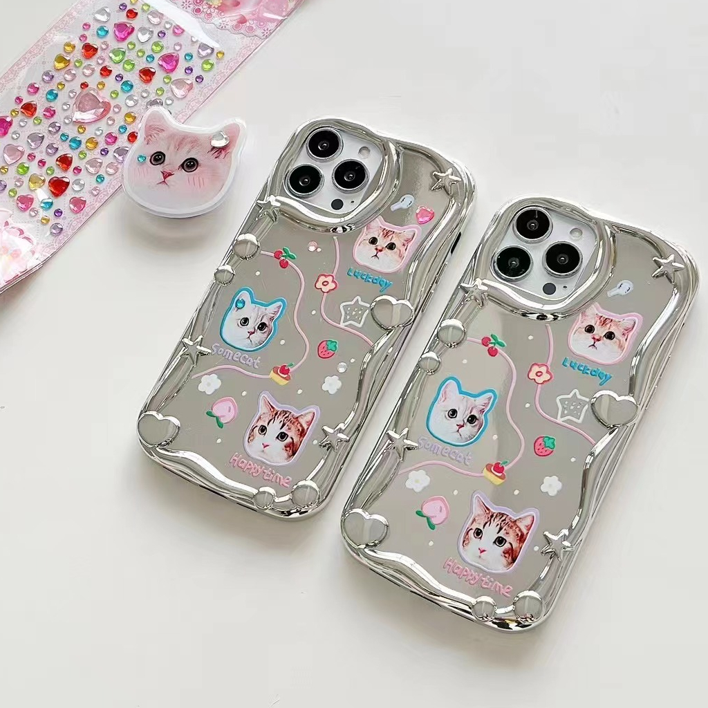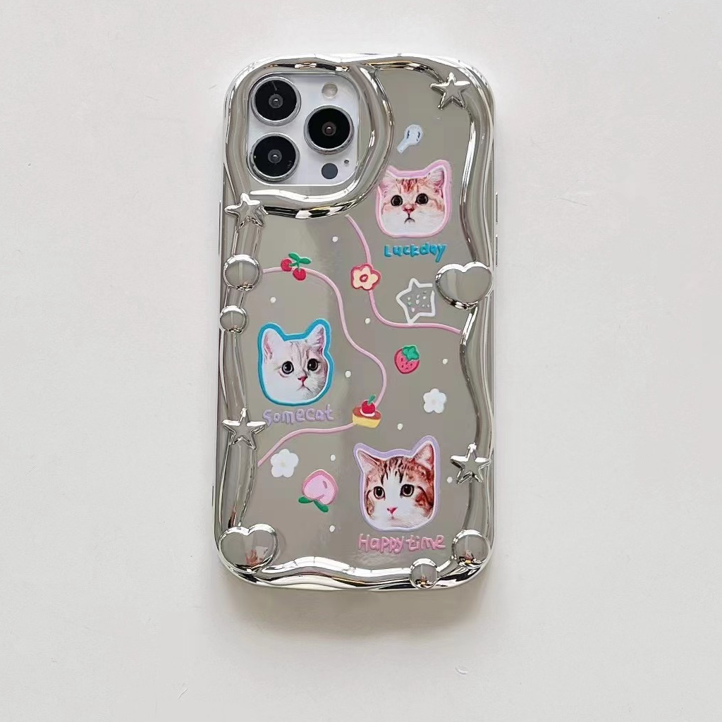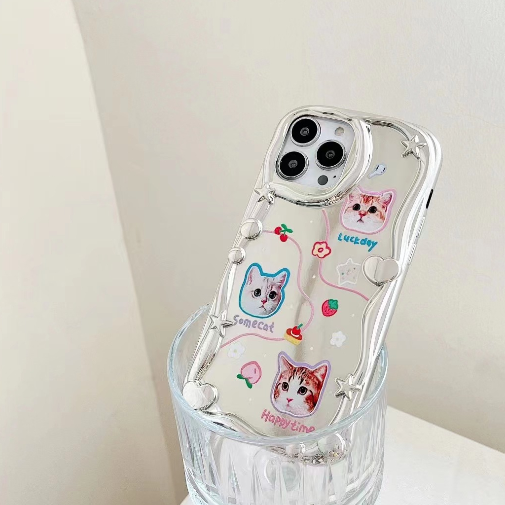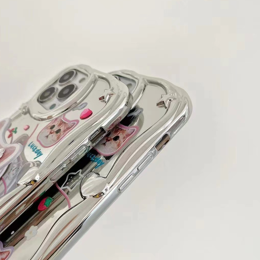 🔔【Ready Stock】 Lovely Kitty Puppy Wave Silver Mirror Soft Case iP iPhone 14 + Plus X XS XR 11 12 13 Pro Max FTD Casing Apple