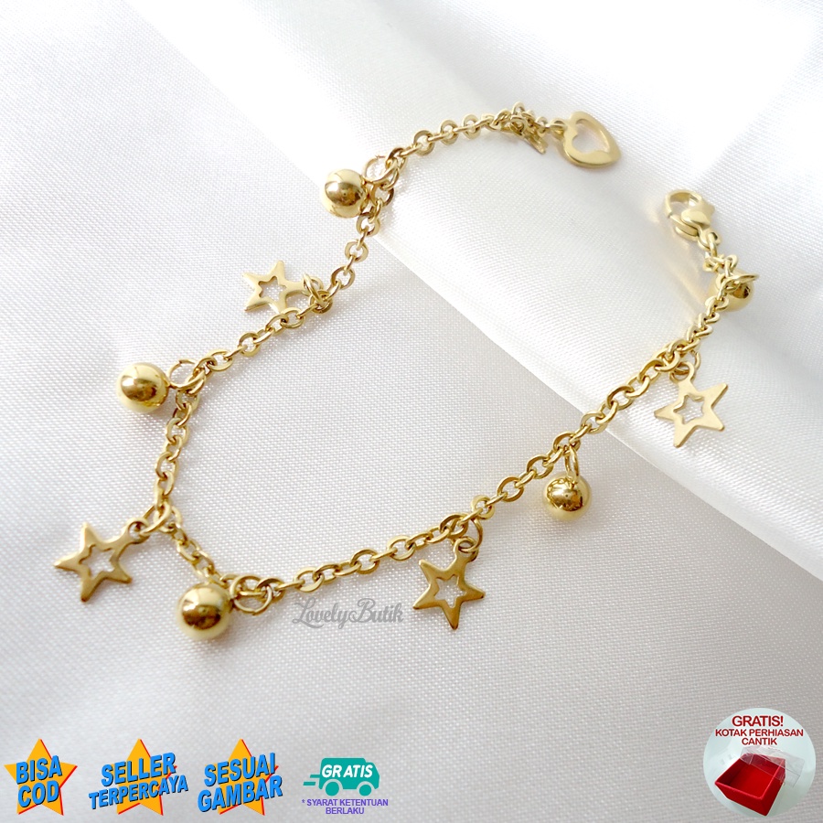 Aksesoris Fashion > Gelang Tangan & Bangle > Lovelybutik - Gelang Tangan Titanium Asli Anti Karat dan Luntur Mars Gelang Korea Wanita Model Rantai Nori Gandulan Bintang Kekinian BONUS KOTAK PERHIASAN