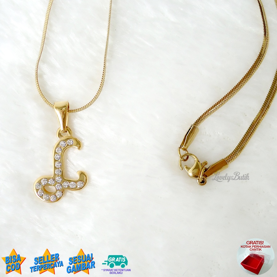 Detail Lovelybutik - Kalung Inisial Huruf Titanium anti karat Kalung hurup Abjad Alphabet Ins L Klasik Bonus Kotak Perhiasan
