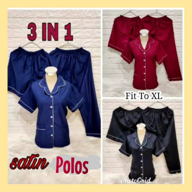 LoverFashion Piyama 3in1 Bahan Satin polosLoverFashion Piyama 3in1 Bahan Satin polosLoverFashion Piyama 3in1 Bahan Satin polos