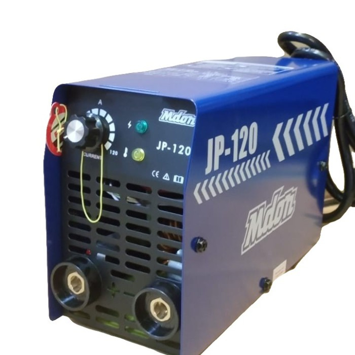 Mesin Las Portable Mdon JP-120 Merk: Mdon MODEL: JP-120 POWER:450WATT VOLTAGE:220V/50HZ~60HZ RATED OUTPUT(V):120/24,8 WELDING CURRENT RANGE (A):20-120A (2MM~3,2MM) NO -LOAD VOLTAGE (V):65 RATED LOAD DUTY CYCLE:60