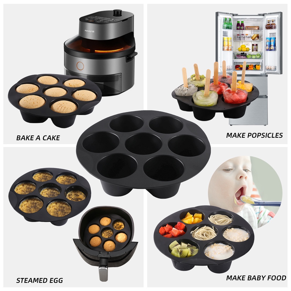 Loyang Kue Pancake Anti Lengket Anti Lengket Baking Pan Reusable Bakeware 7 /8 Inci Cetakan Silikon Kue Popsicle Ice Cream Tray Bulat Muffin Roti Cup Mold Untuk Air Fryer Pan Microwave Oven Kulkas