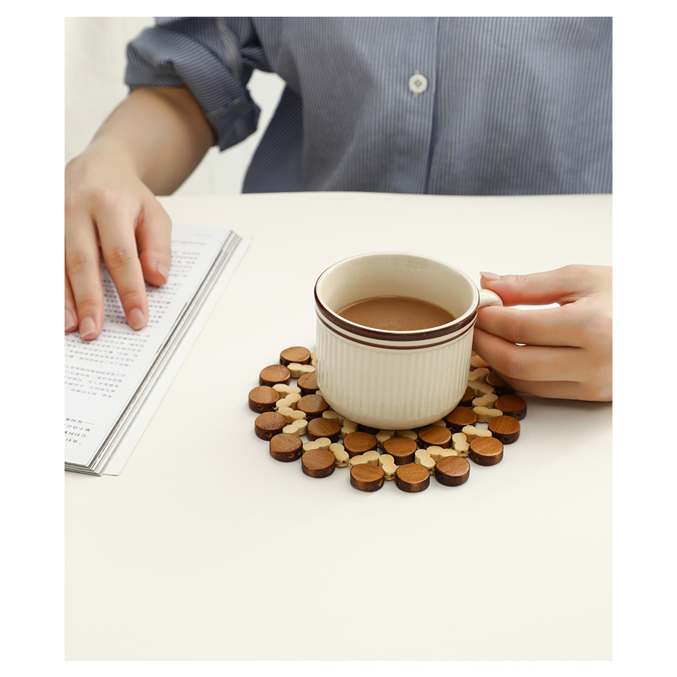 Perlengkapan Rumah > Peralatan Makan > Tatakan Piring & Gelas > LP3K Lepek Bawahan Panci Kayu bentuk bunga bundar anti Panas hiasan meja dapur estetik tadahan Tadah piring gelas Tatakan alas Pegangan cempal Motif Lucu Hewan meja kaca