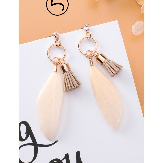 LRC Anting Tusuk Fashion Beige Tassel Decorated F07594