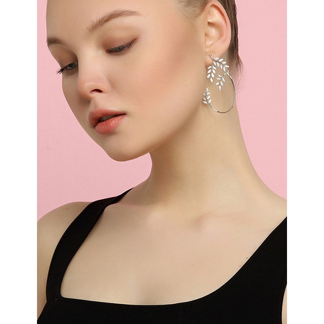 LRC Anting Tusuk Fashion Silver Olive Branch With Rhinestone Stud Earrings (one pc) D46786