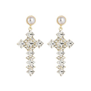 LRC Anting Tusuk Fashion Pearl Alloy Cross Earrings With Diamonds D95334